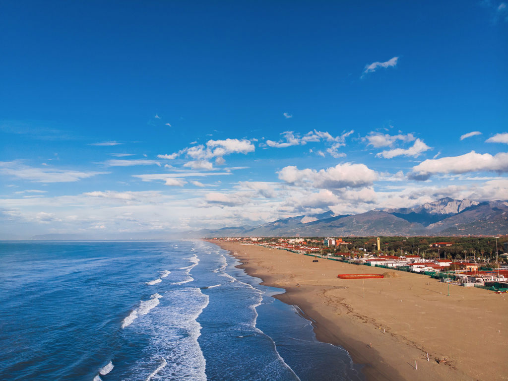 Песчаный пляж Виареджио, длинной в 20 км, расположен между озером Массачукколи и берегами реки Версилия, достигает пика своей красоты на закате, когда солнце закатывается прямо в море.
